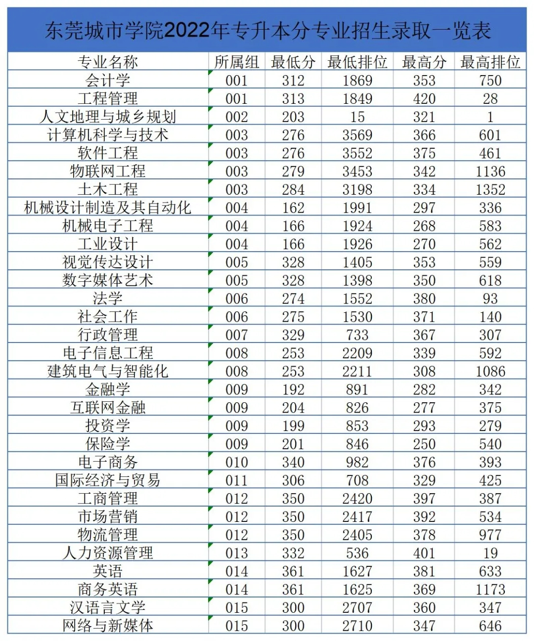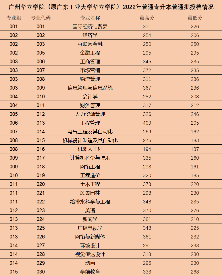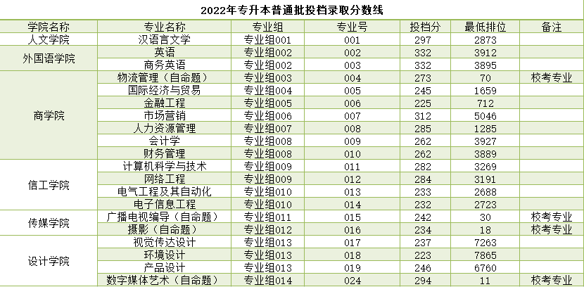 2022年专插本投档情况