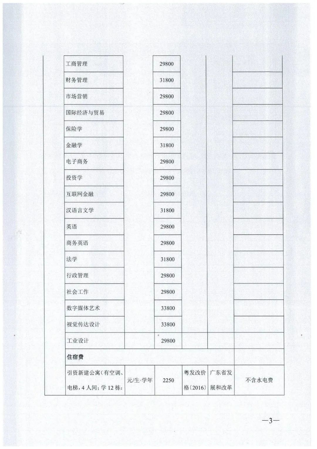 具体专业及收费标准如下