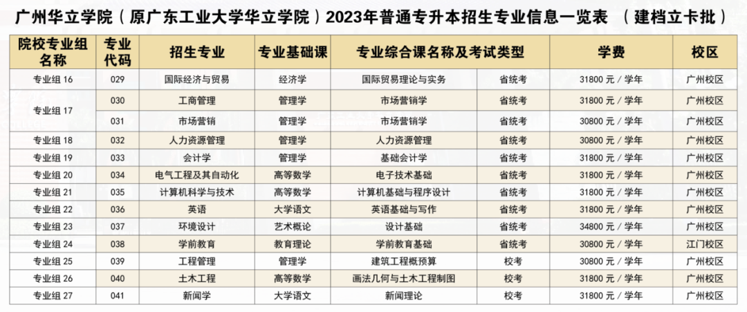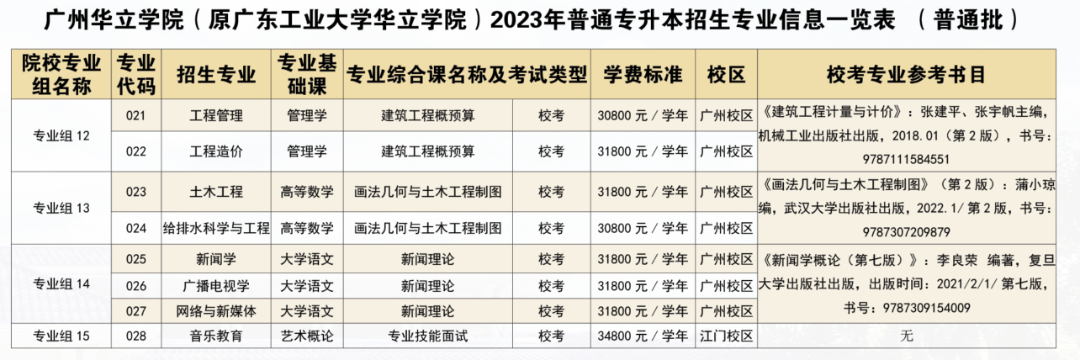 广州华立学院于昨天在官方微信公众号公布了23年专插本的拟招生专业与校考专业参考书目。