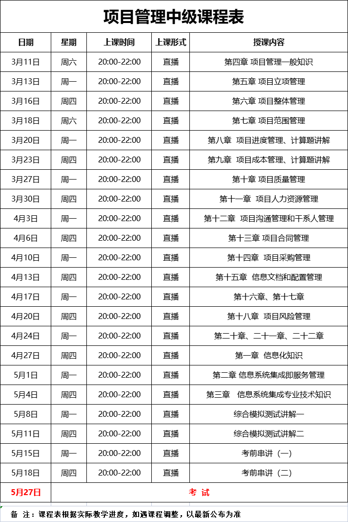 本次课程主要针对系统集成项目管理工程师(中级)开展相关线上培训课程。