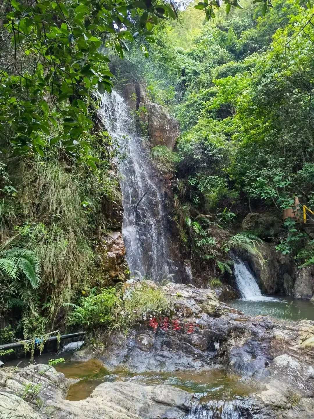 溪水潺潺,从山涧石缝中涌出