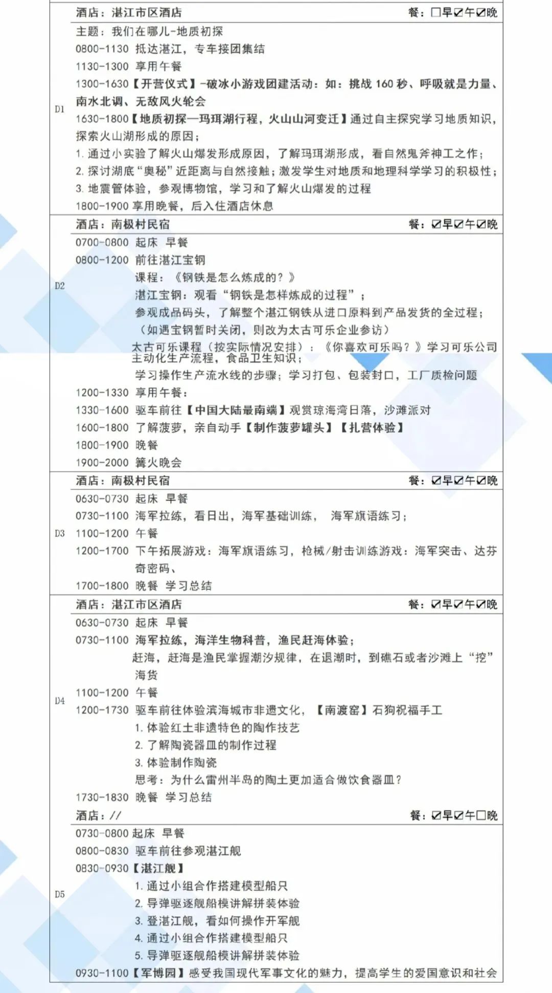 住宿费用、餐食费用、空调大巴、研学教师、保险