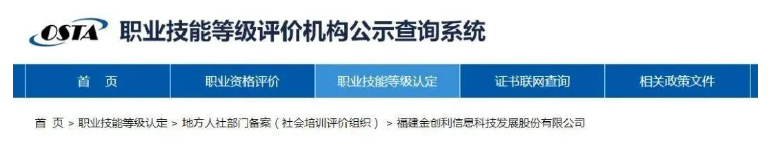 社会培训评价组织由人力资源社会保障部进行遴选,经遴选的用人单位和社会培训评价组织纳入职业技能等级认定目录,按规定开展职业技能等级认定。其中,金创利作为福建省职业技能等级认定社会培训评价组织,面向社会提供职业技能等级认定服务。