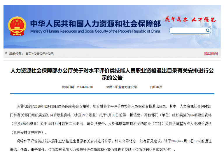 2019年12月30日,国务院决定分步取消水平评价类技能人员职业资格,推行社会化职业技能等级认定,对劳动者(含准备就业人员)的职业技能水平进行科学规范客观公正评价,对合格者授予相应的职业技能等级证书。